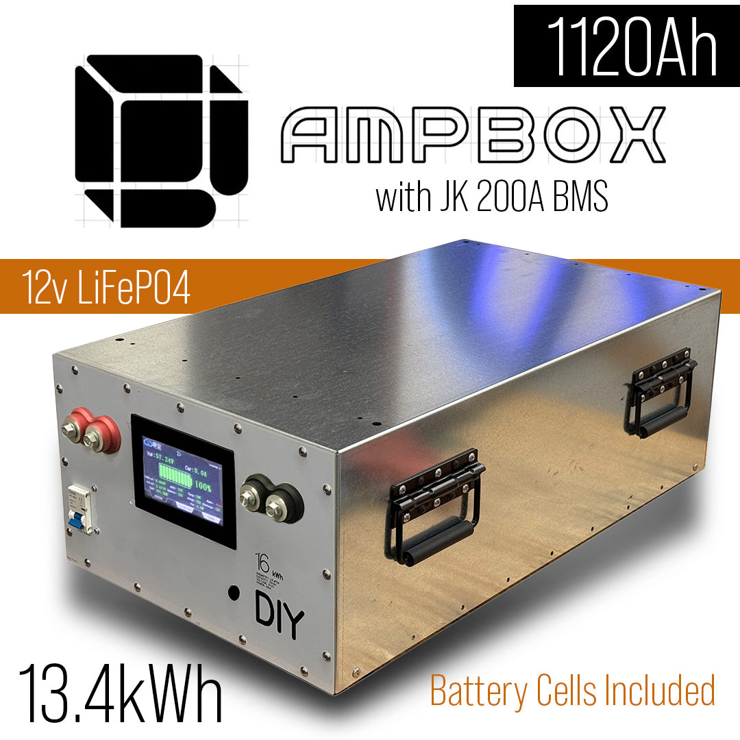 12v AmpBox DIY Lifepo4 Battery BOX With JK 200A BMS with LCD Screen