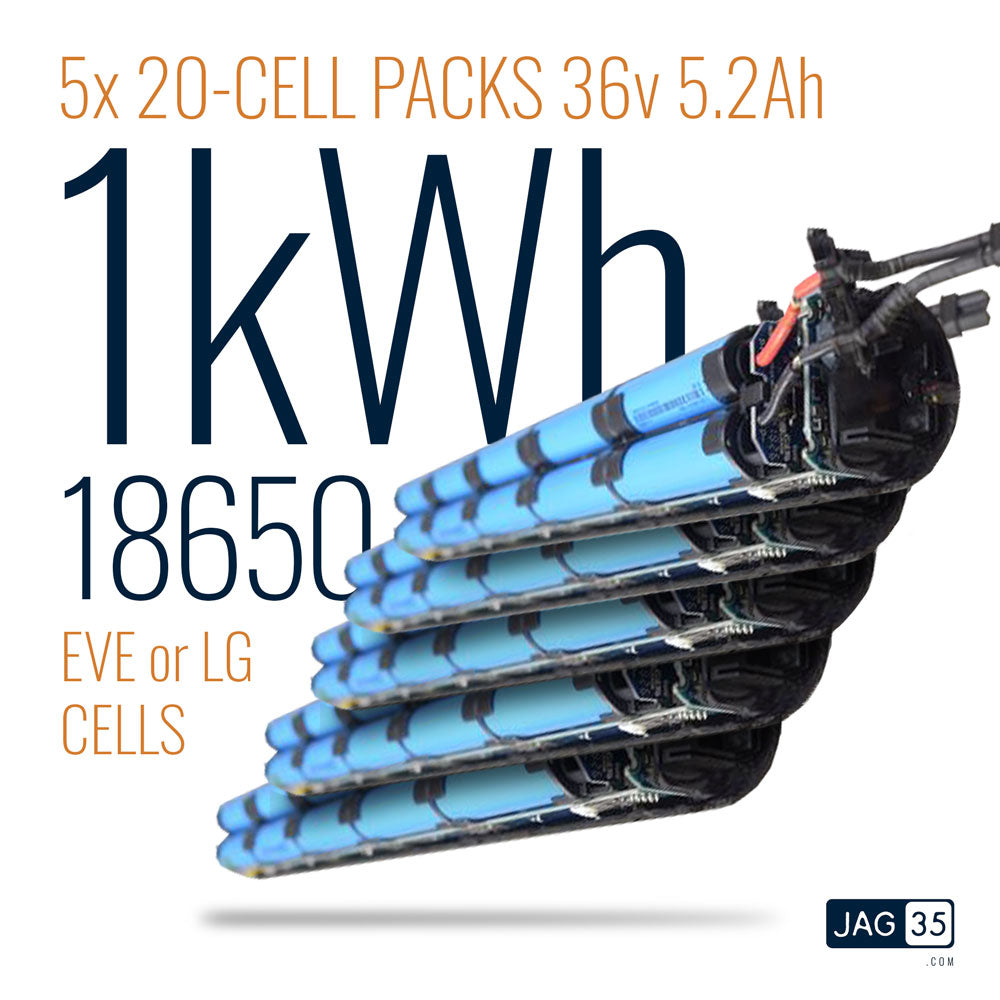 1kWh! 5x 20-Cell Battery Packs Li-Ion 36V