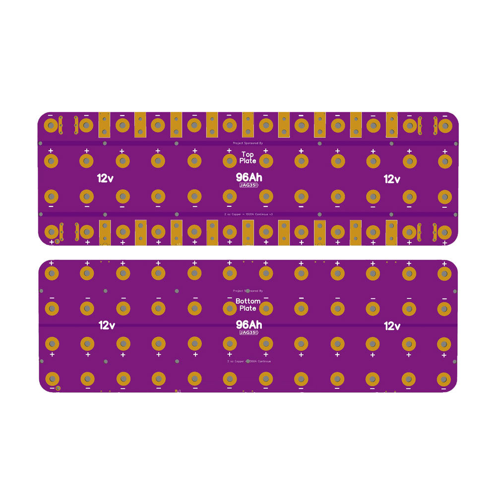 Perfect for car audio! This 12v 96Ah Busbar PCB Kit let's you build a powerful 12v LiFePO4 battery using x48 Headway cells (sold separately). Each set contains x2 brand new beefy busbar PCBs (top plate + bottom plate) with 2oz copper for high conductivity.