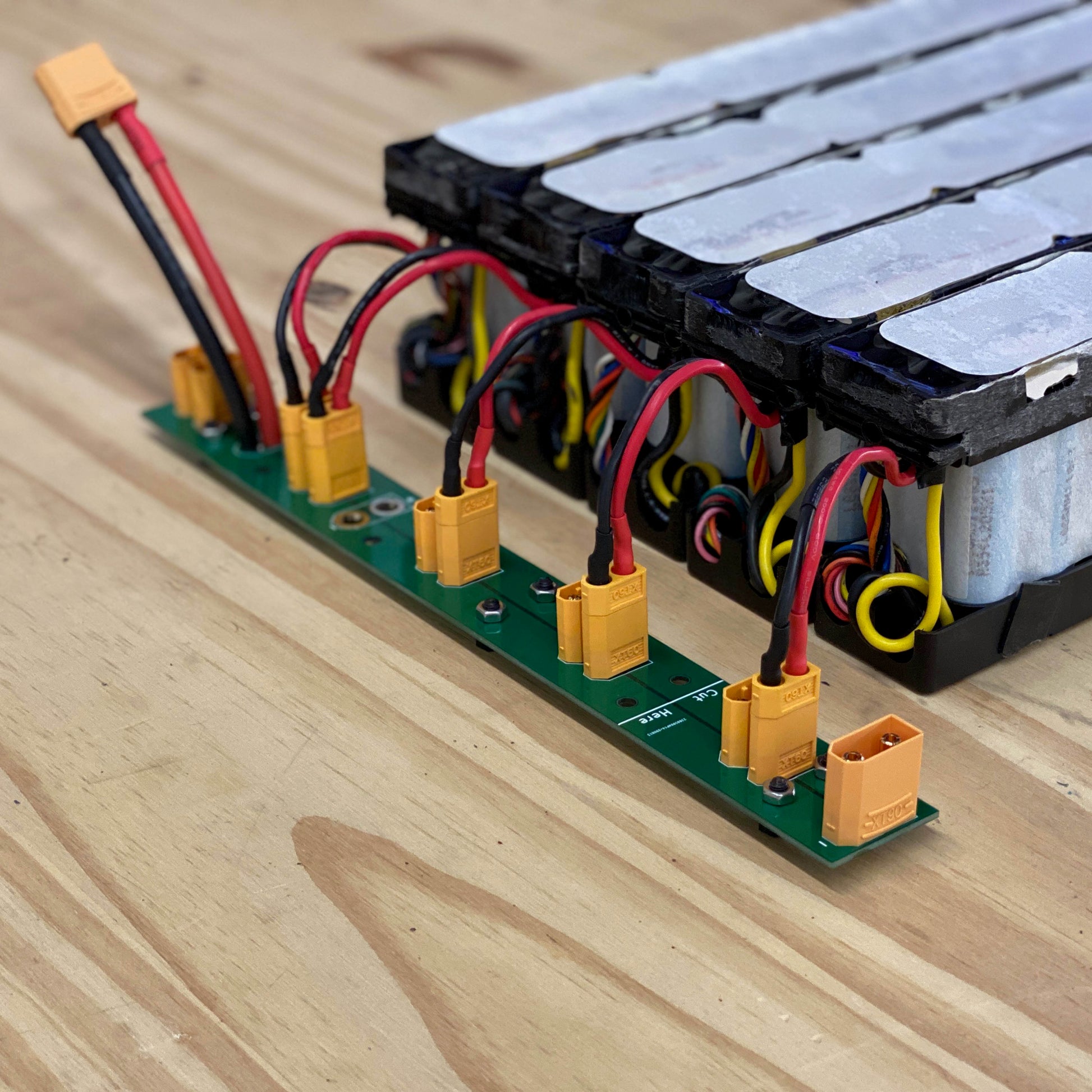 This is a DC PowerStrip, can be used for Jehu's PCB DIY Powerwall Build or other DIY projects. This is the fully populated version. Many battery packs have XT60 connectors, so this PowerStrip allows you to connect many battery packs in Parallel to build a bigger battery system. It uses 2oz copper traces on both sides of the PCB board, good for up to 80A and 160A.