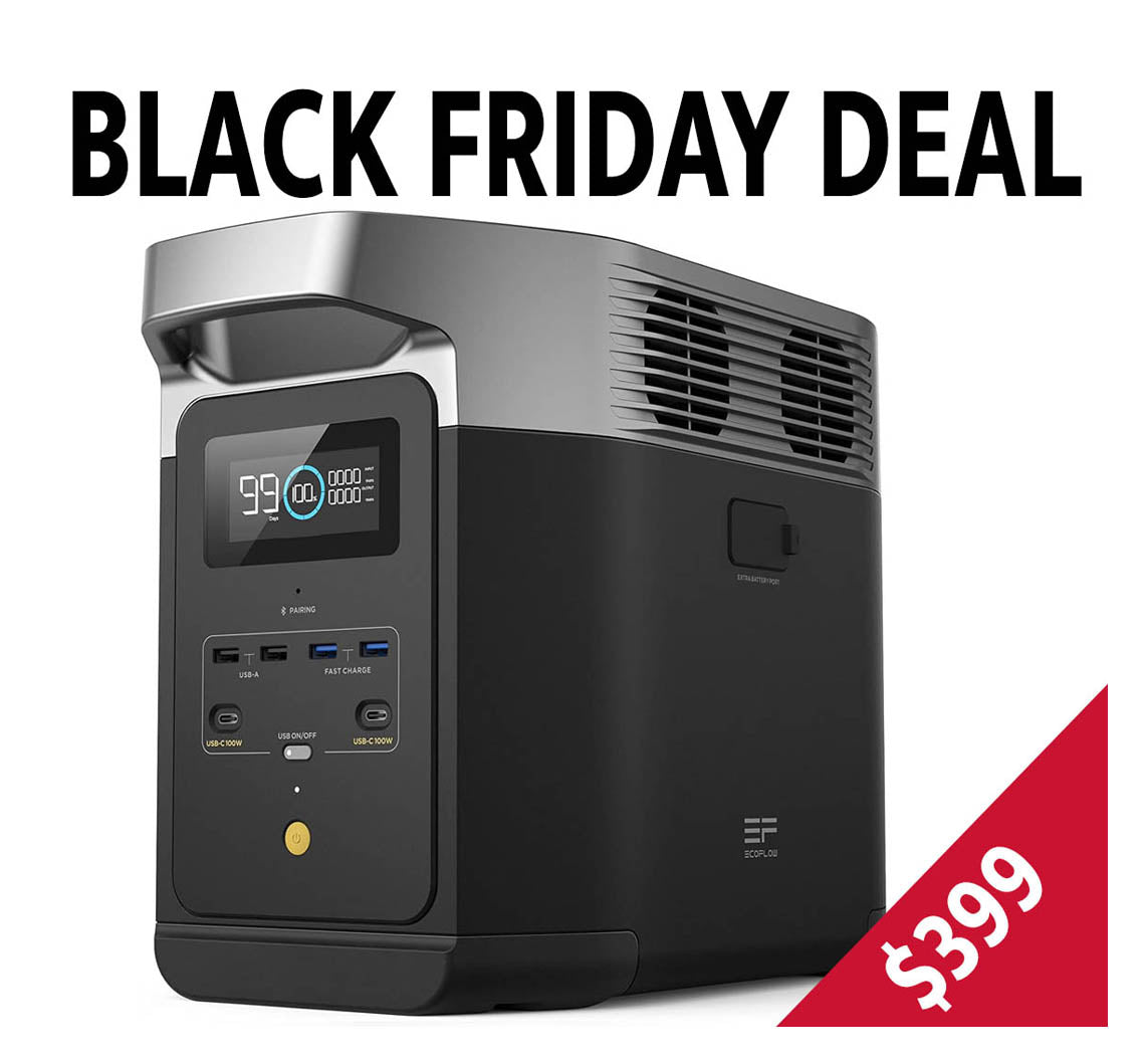 EF ECOFLOW Portable Power Station Delta 2, 1024Wh LiFePO4 (LFP) Battery, 1800W AC/100W USB-C Output, Solar Generator