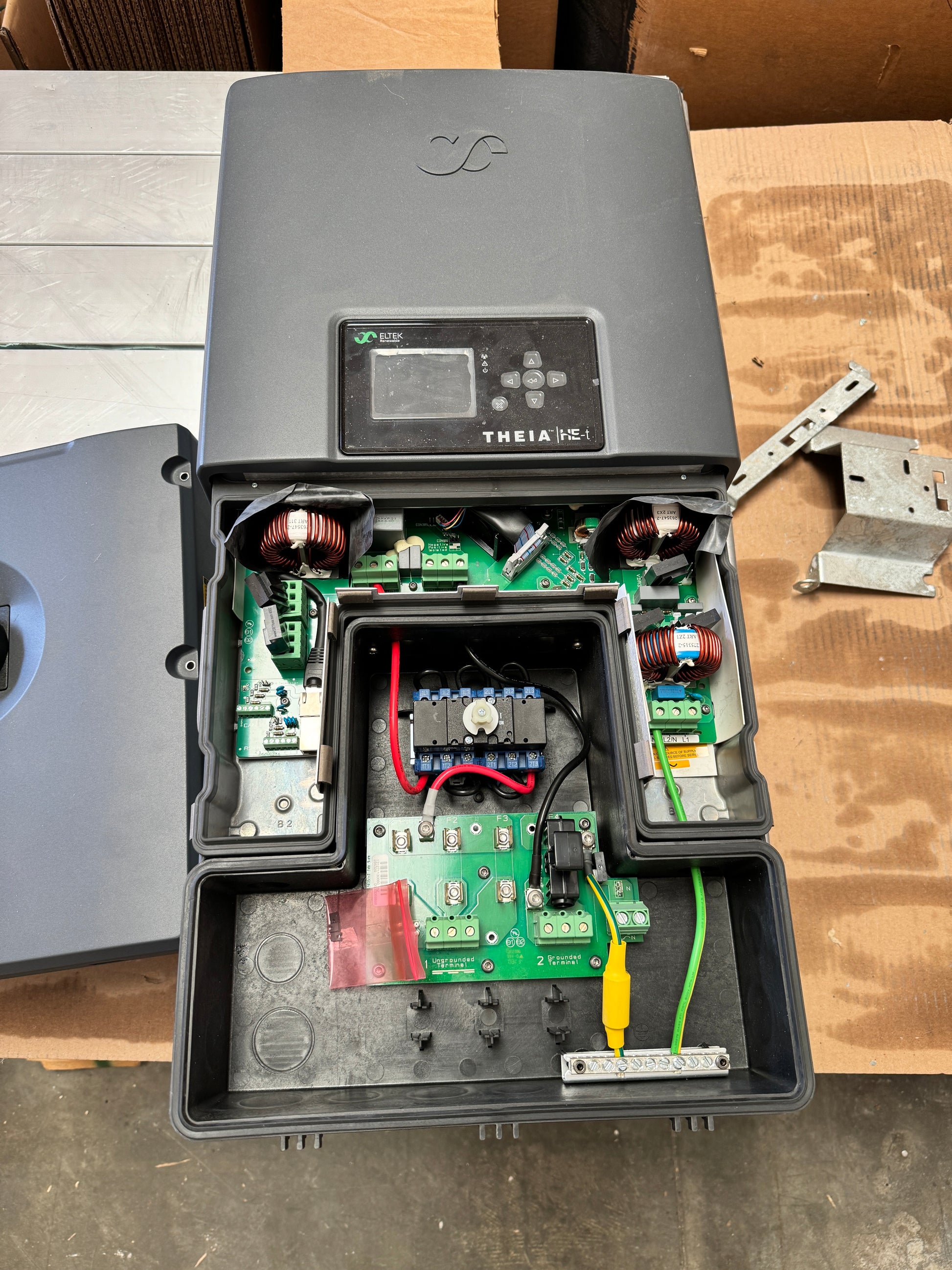 This listing is for unused MPPT PV-grid connected Theia 4. 4HE-t inverters (grid tie). Includes built in DC circuit breaker. Amazing deal, compare with similar units selling for $500+.