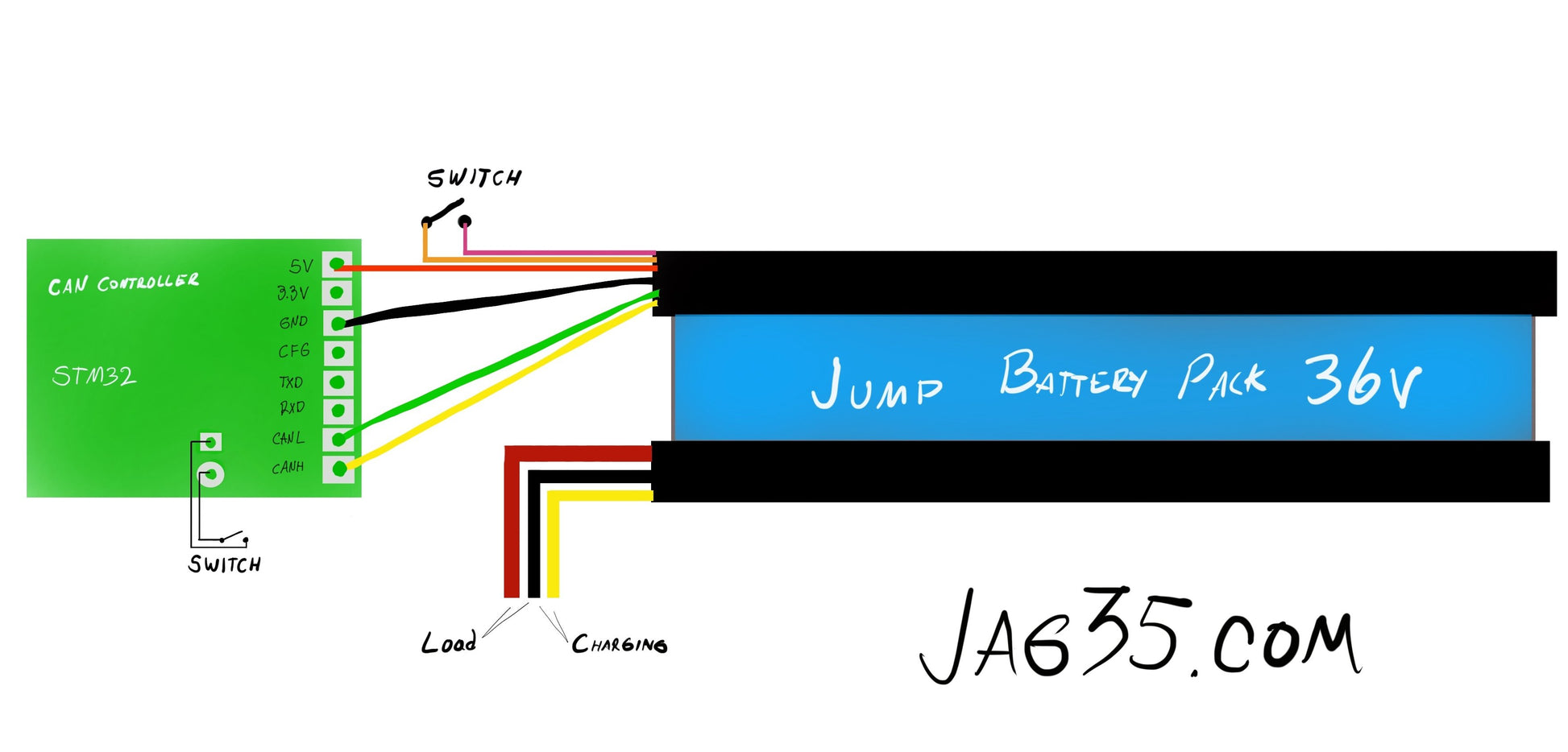 This a STM32 Based CAN controller to wake up the JUMP 36v Scooter Battery pack BMS system. Fully Coded by ALEX GRADEA with source code found here, ready to be wired and used.