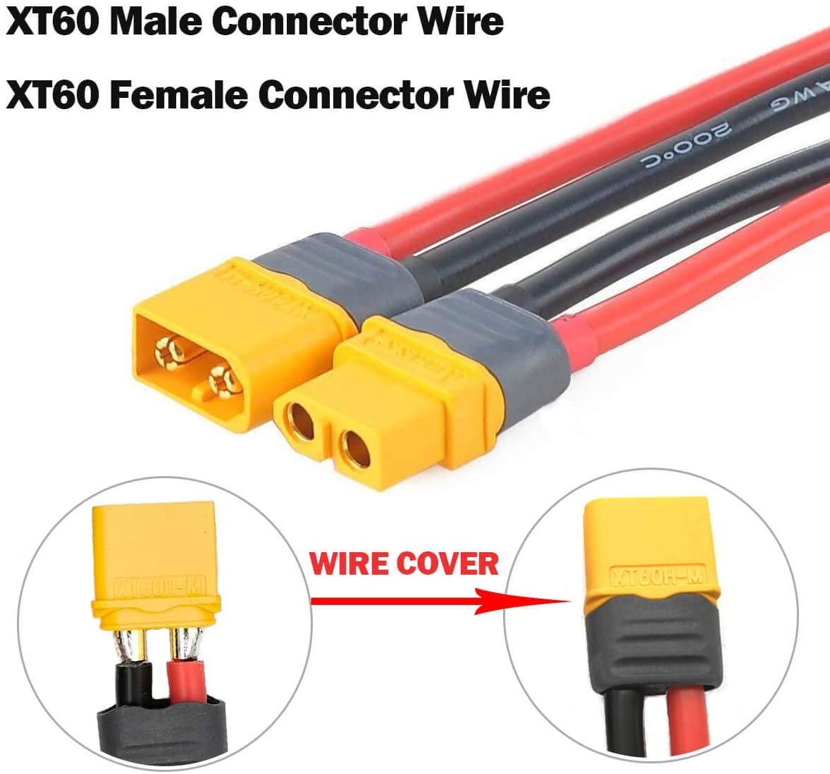 Here, we have UPGRADE XT60 connectors Female Male with soldered wire,