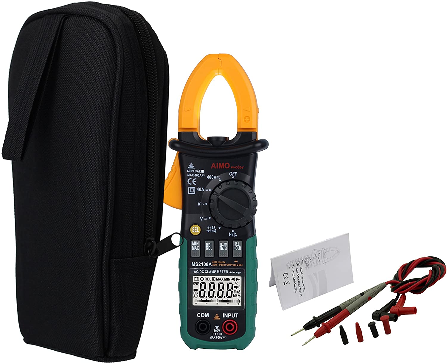 Multimeter AIMO MS2108A Auto Range Digital Clamp Meter 400 AC DC Current Hz Tester