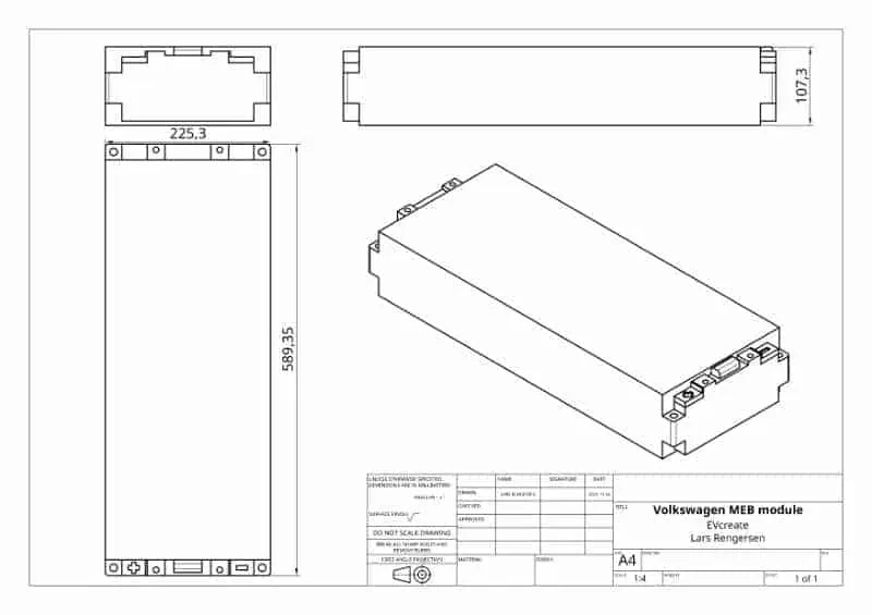 6.85 Battery module taken from 2022 VW ID4 Pro S These modules are removed from wrecked vehicles and are tested deemed free of physical damage and with nominal voltage. Perfect for DIY car conversion projects. Connectors for cell terminals will be included with every module.