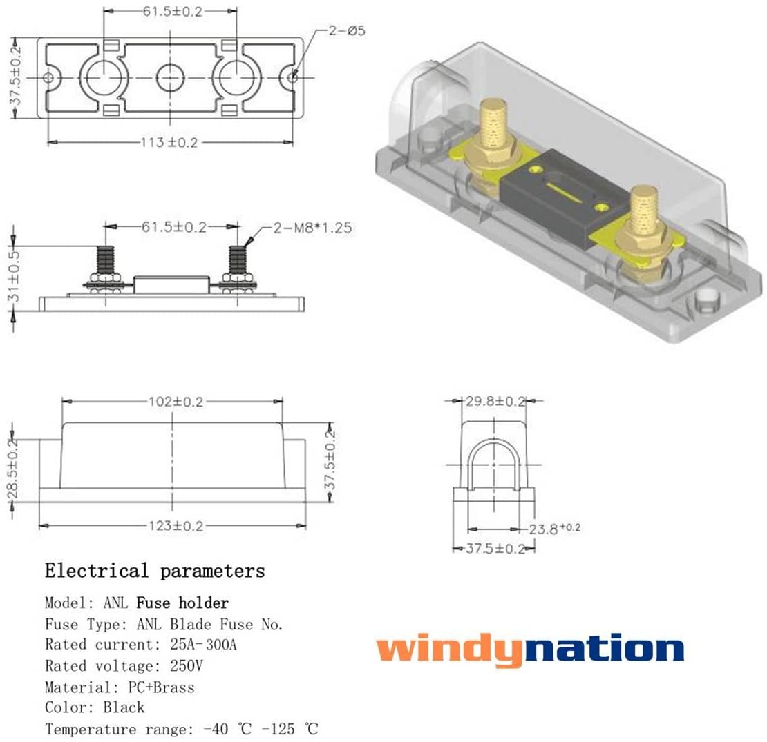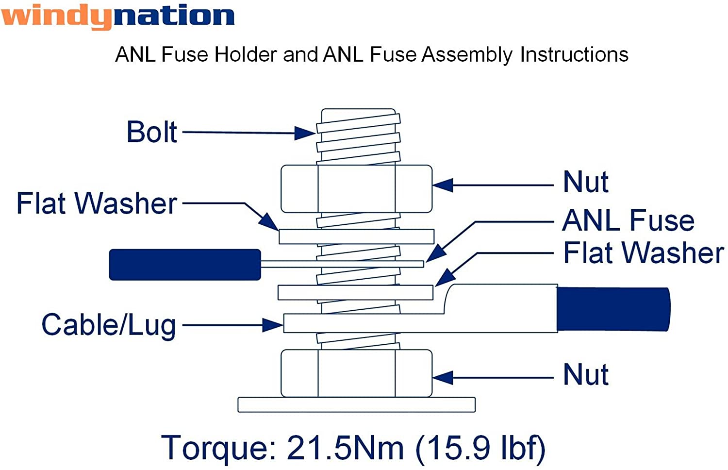 - Includes 1pc WindyNation ANL Fuse Holder + 2pcs ANL 150A Fuses